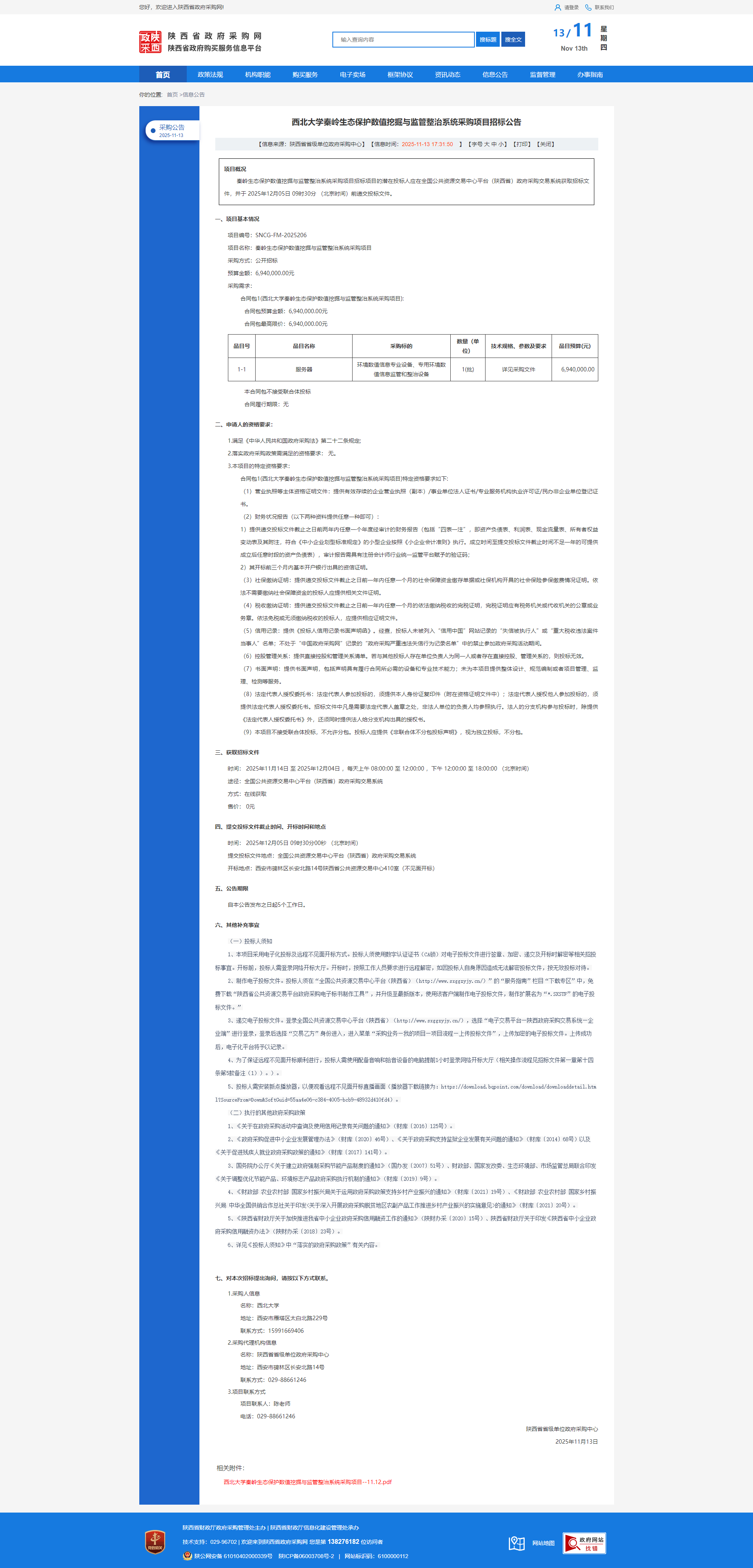 西北大学秦岭生态保护数值挖掘与监管整治系统采购项目招标公告