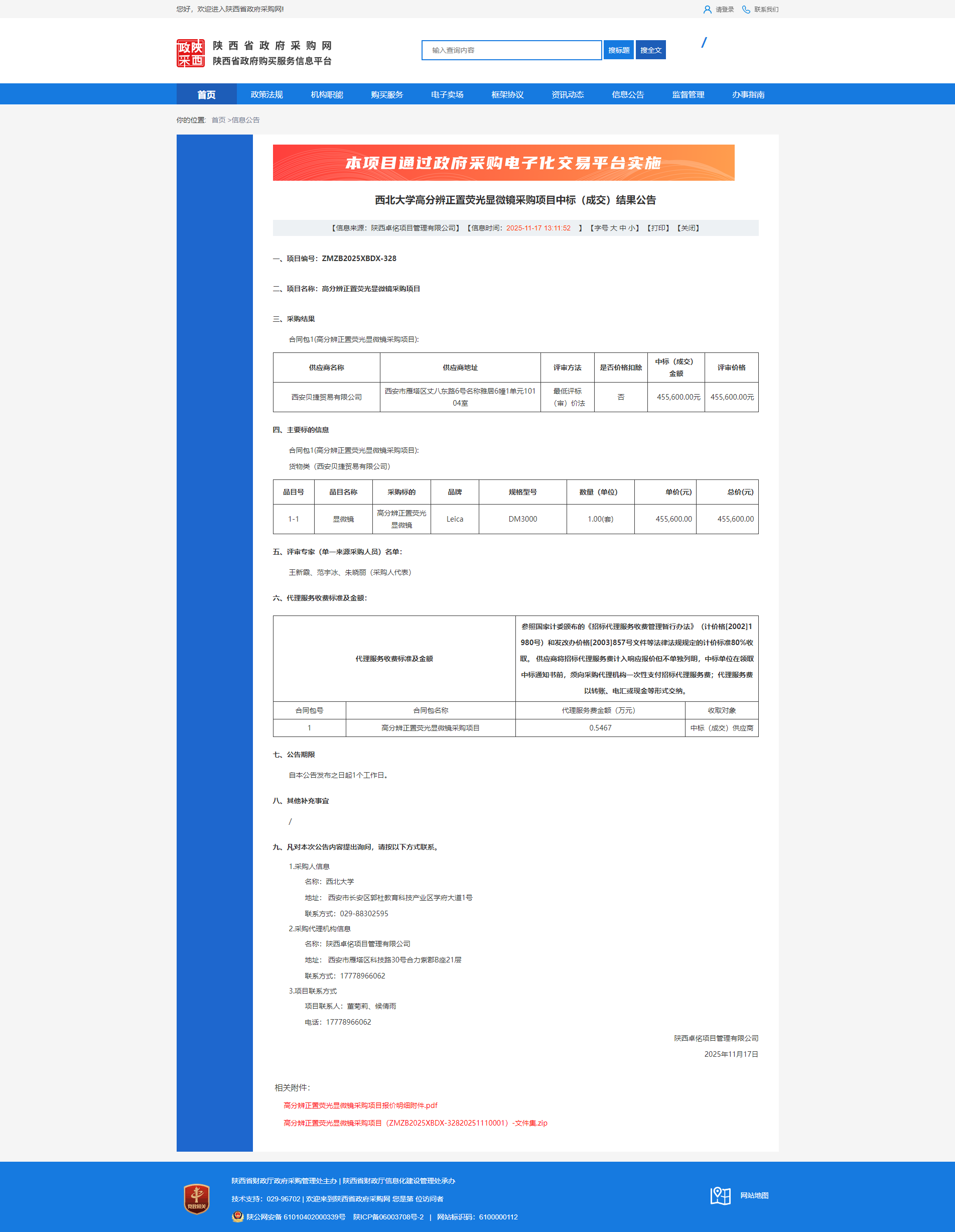 西北大学高分辨正置荧光显微镜采购项目中标(成交)结果公告