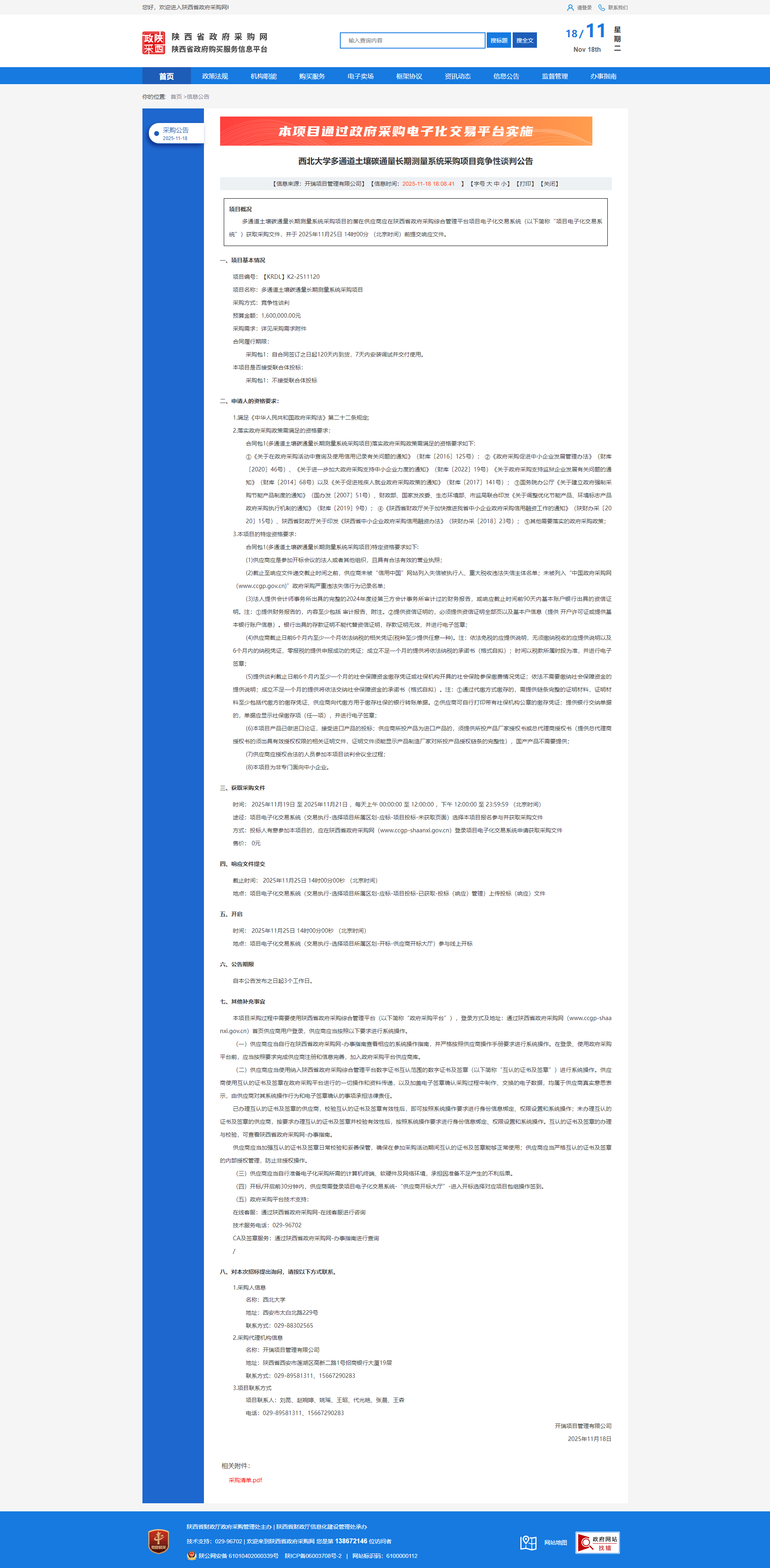 西北大学多通道土壤碳通量长期测量系统采购项目竞争性谈判公告