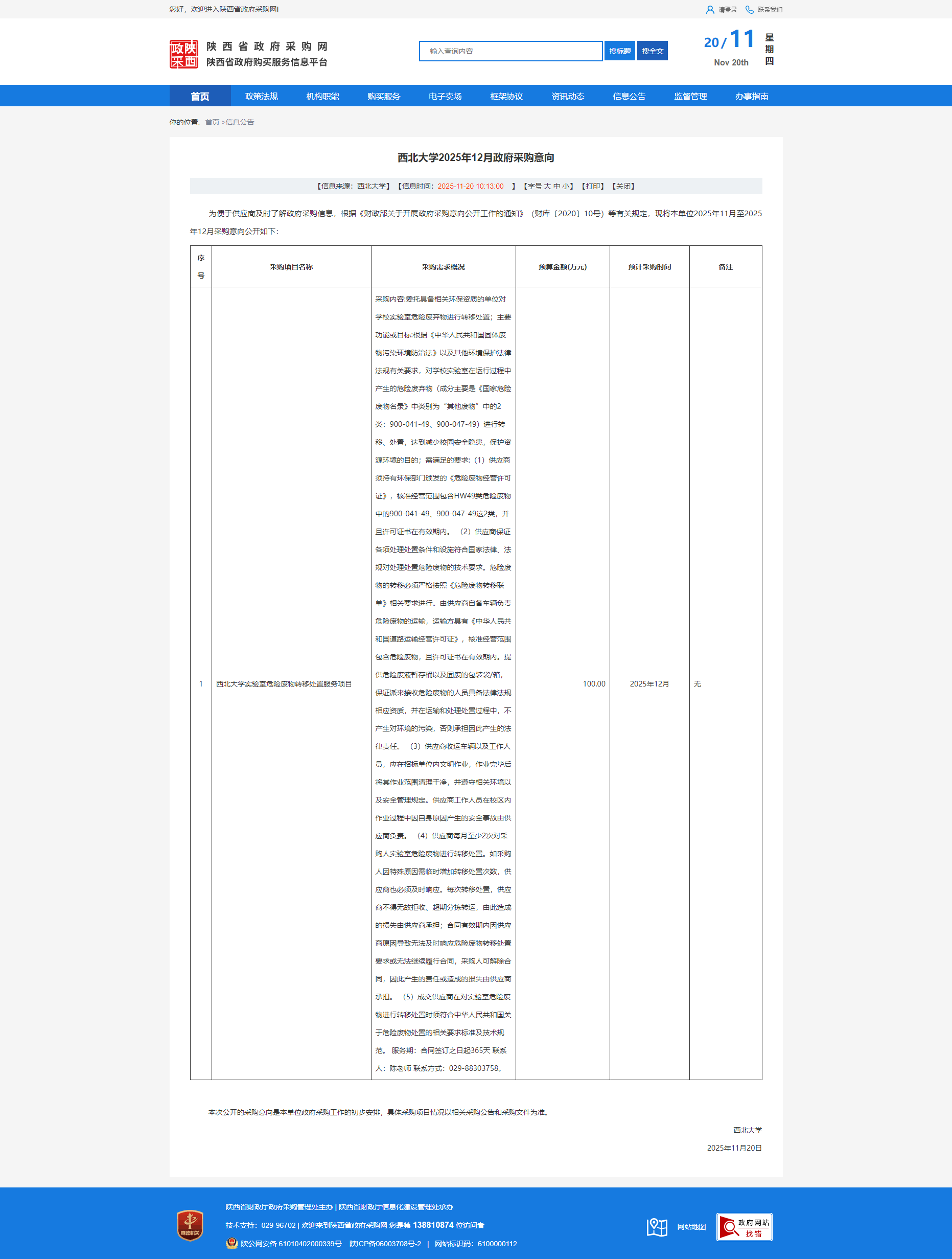 西北大学2025年12月政府采购意向