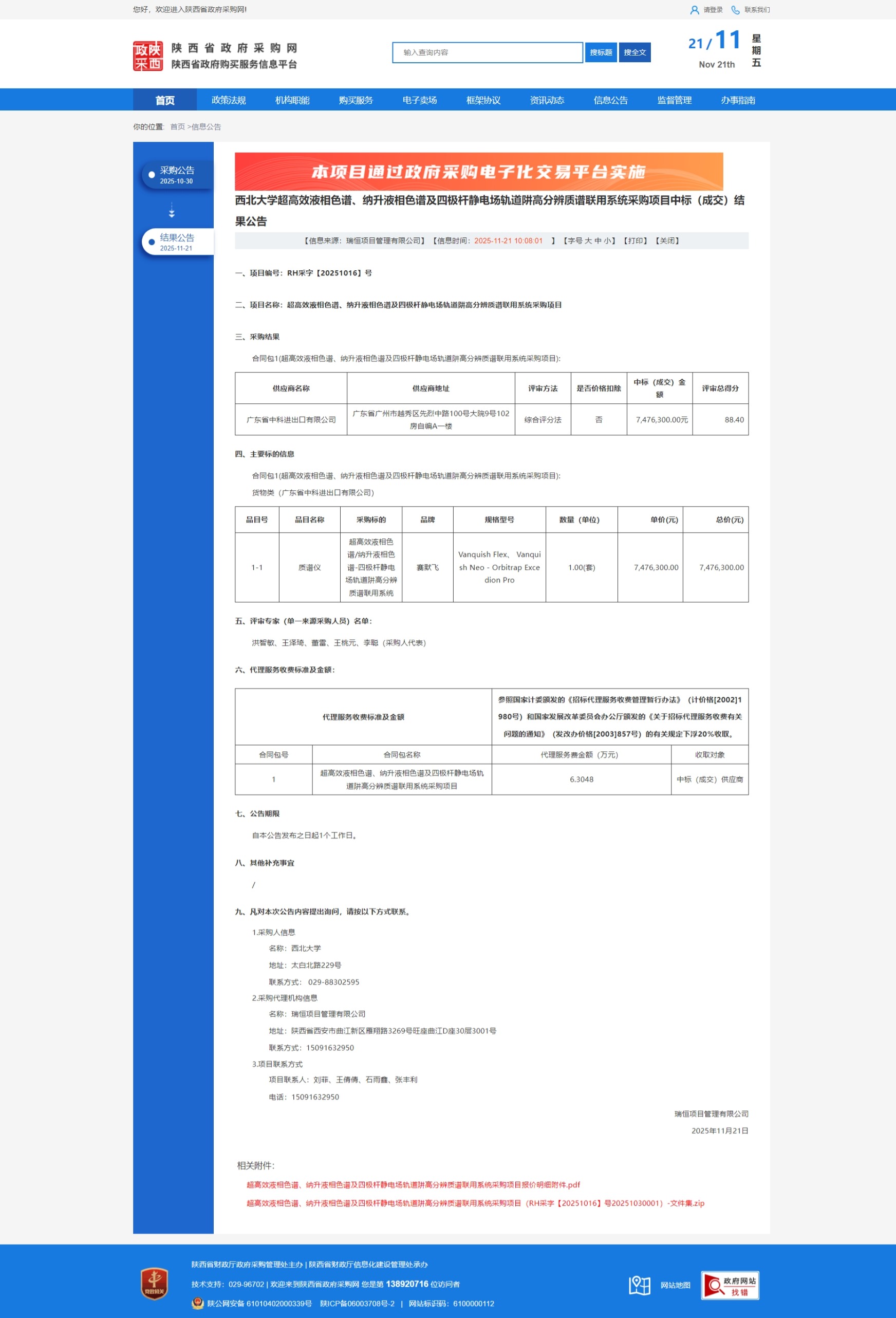 西北大学超高效液相色谱、纳升液相色谱及四极杆静电场轨道阱高分辨质谱联用系统采购项目中标(成交)结果公告 作者:国有资产管理处 编辑:国有资产管理处 时间:2025-11-21 原公告链接:https://www.ccgp-shaanxi.gov.cn/freecms/site/shaanxi/ggxx/info/2025/8a69c90c9a9ae48e019aa4271c2e478e.html?noticeType=001021¬iceId=23cedee1-c681-11f0-8063-08c0eb20c666
