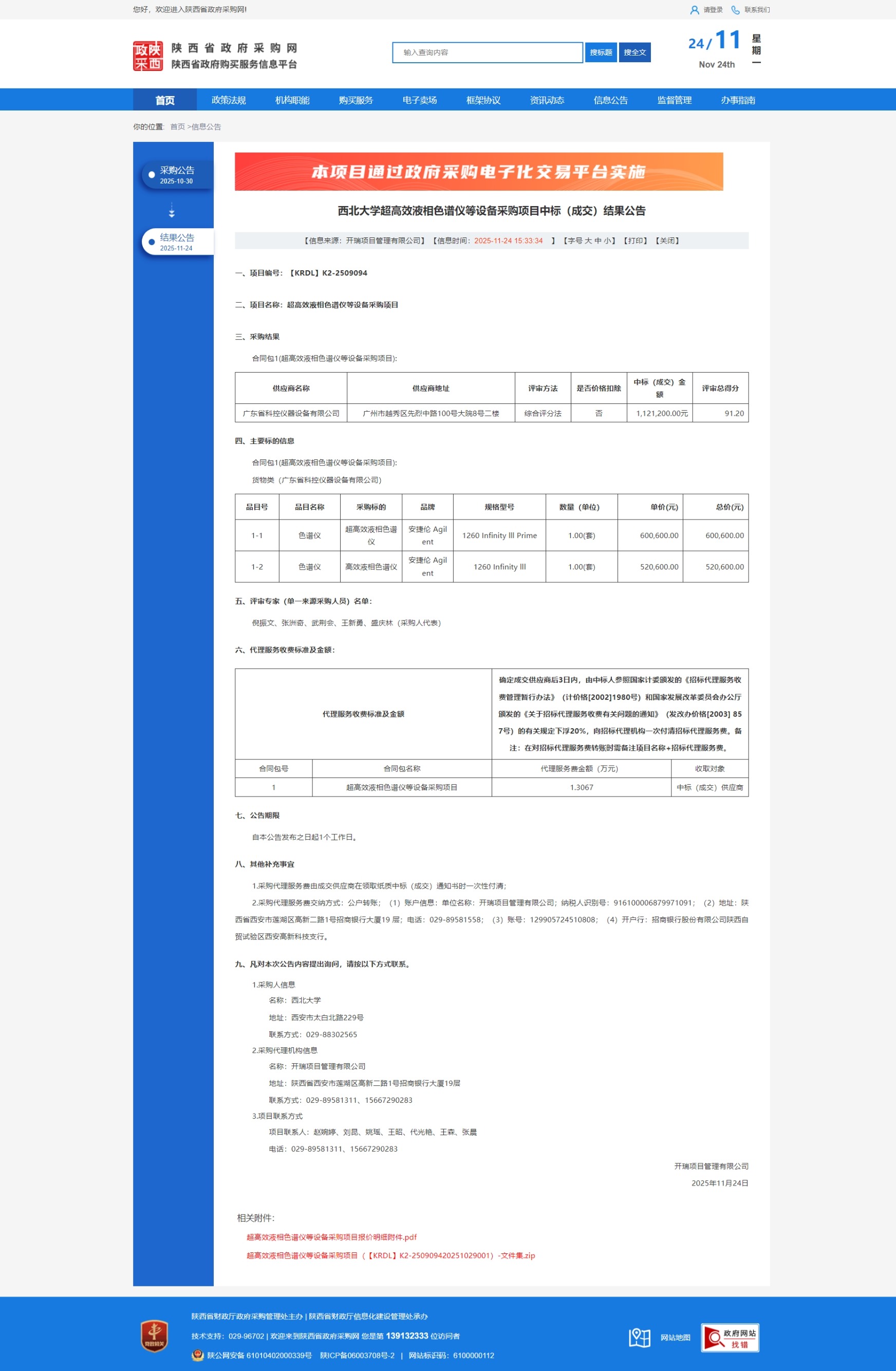 西北大学超高效液相色谱仪等设备采购项目中标(成交)结果公告 作者: 编辑:国有资产管理处 时间:2025-11-24 原公告链接:https://www.ccgp-shaanxi.gov.cn/freecms/site/shaanxi/ggxx/info/2025/8a69c17b9a636c6b019ab4bfa1526691.html?noticeType=001021¬iceId=1f51e8a7-c90a-11f0-8063-08c0eb20c666