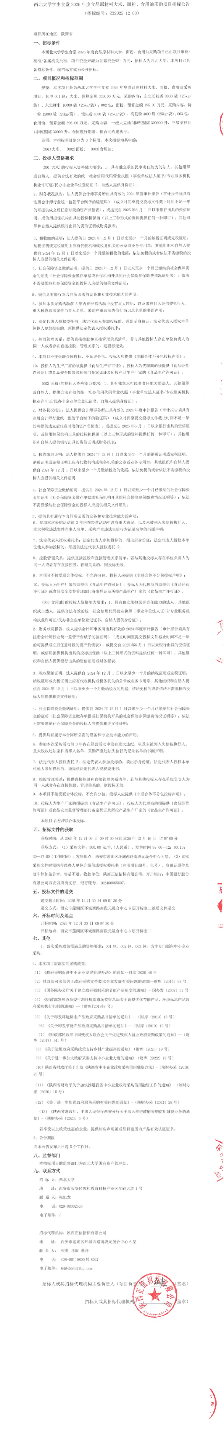 西北大学学生食堂2026年度食品原材料大米、面粉、食用油采购项目招标公告