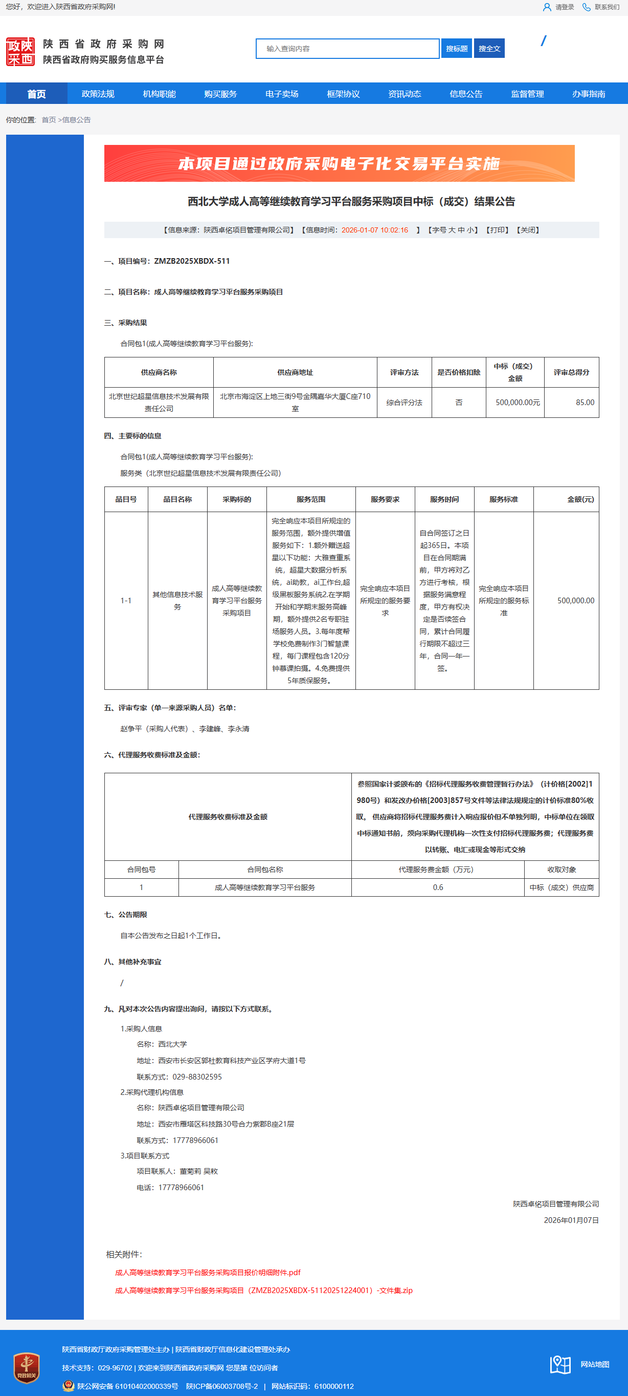 西北大学成人高等继续教育学习平台服务采购项目中标(成交)结果公告