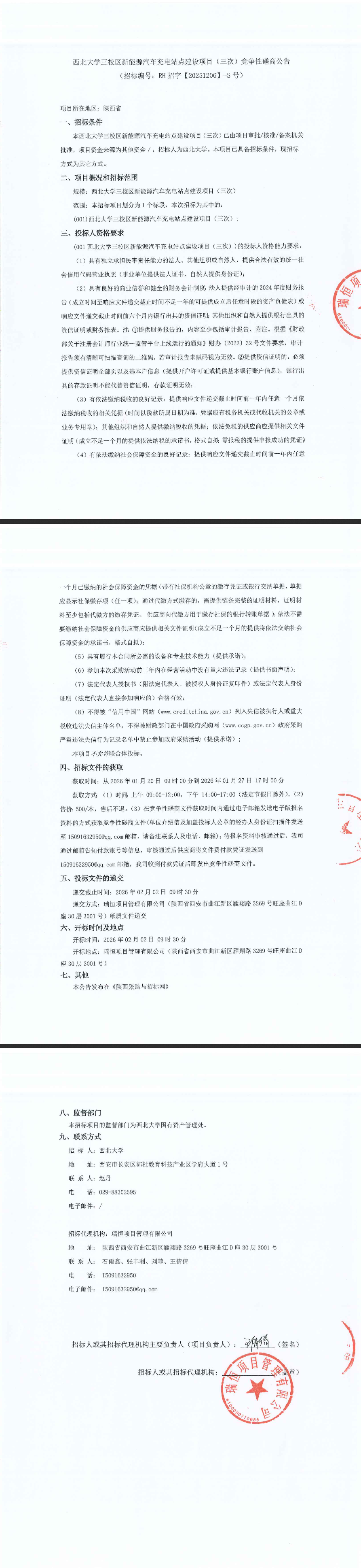 西北大学三校区新能源汽车充电站点建设项目(三次)竞争性磋商公告